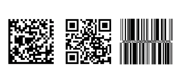 - Data Matrix: Código 2D em forma de matriz de pontos. É muito usado na indústria eletrônica, aeroespacial e farmacêutica porque pode ser lido mesmo em superfícies muito pequenas.